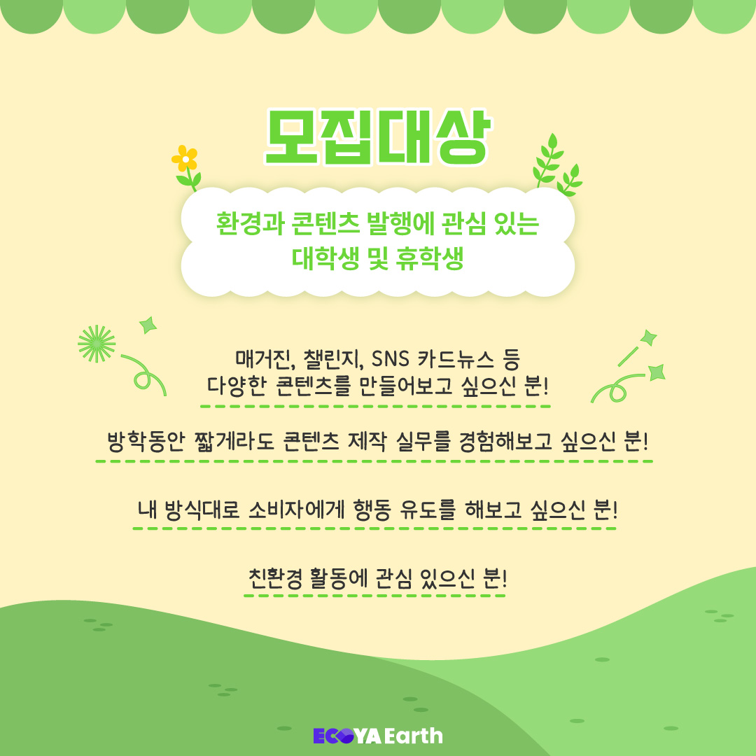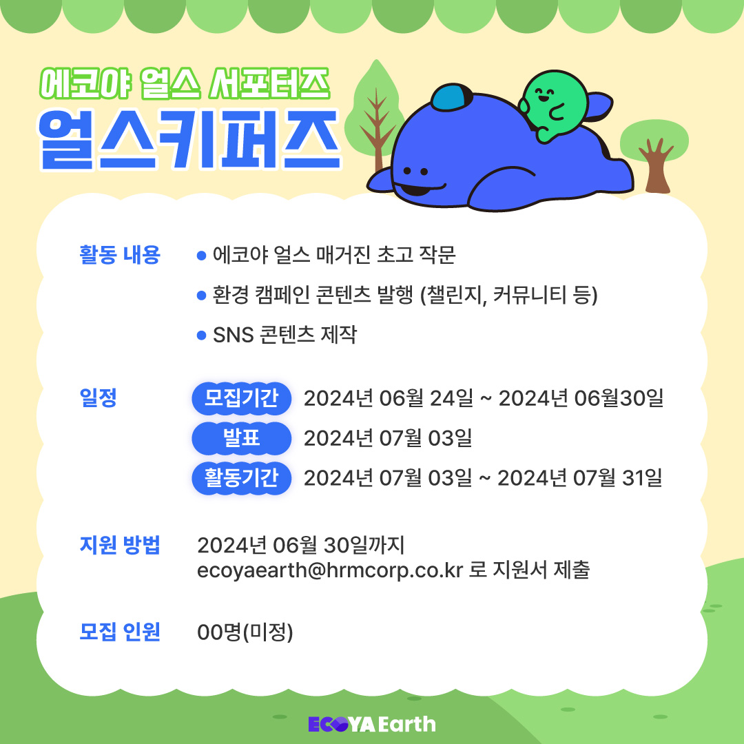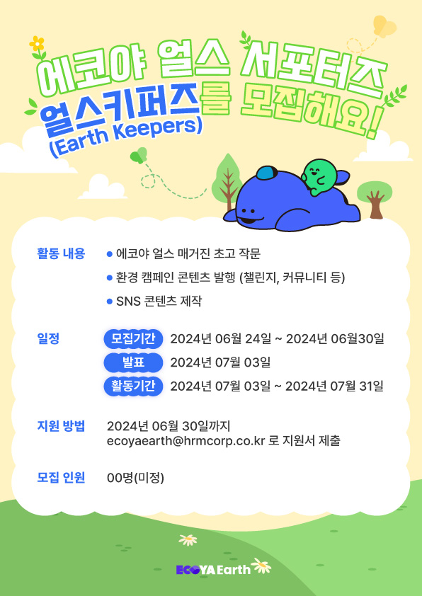 지원서를 다운 받아 담당자 이메일(ecoyaearth@hrmcorp.co.kr)로 발송해 주세요!