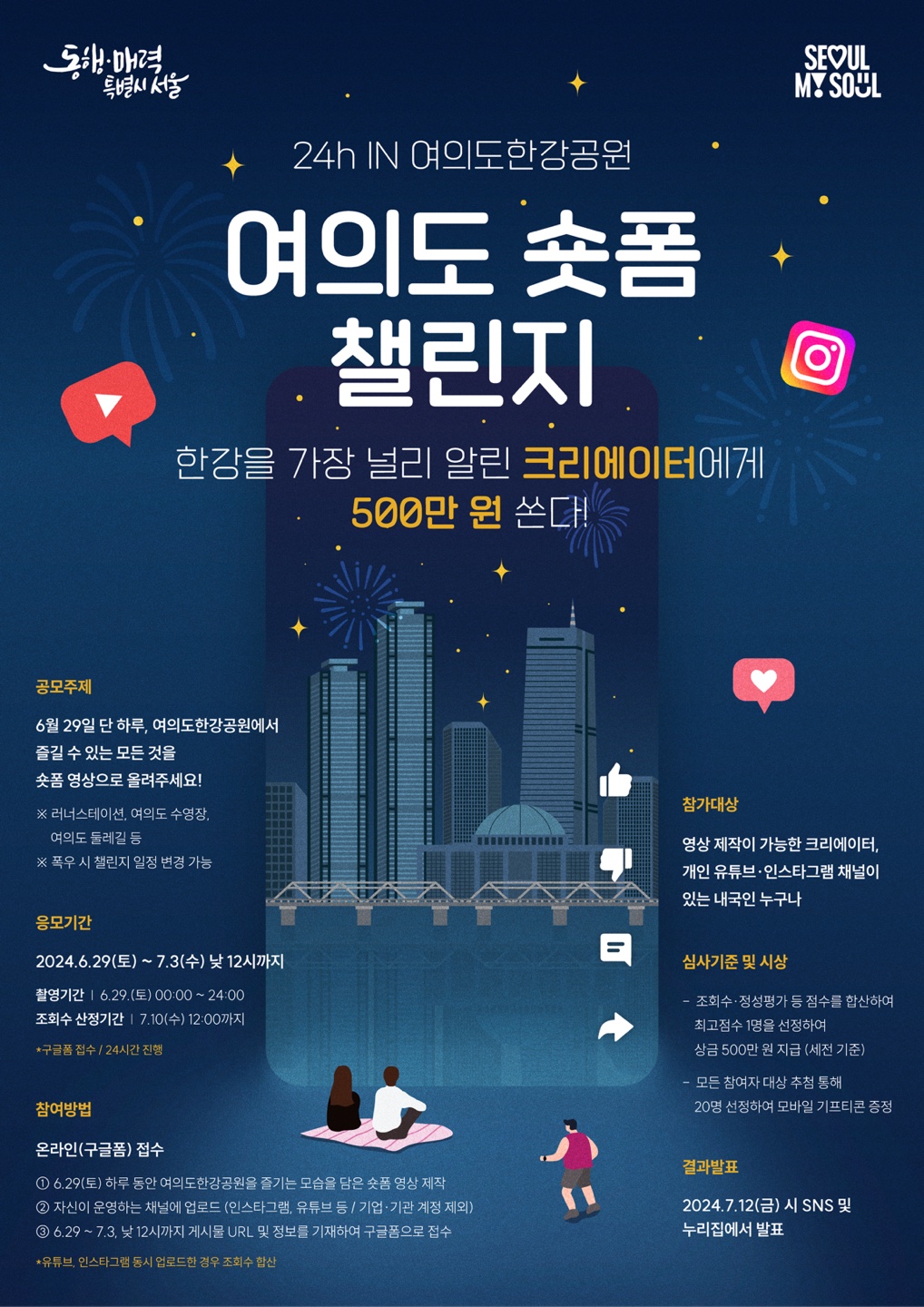 6월 29일 단 하루, 여의도한강공원에서 즐길 수 있는 모든 것을 숏폼 영상으로 올려주세요!