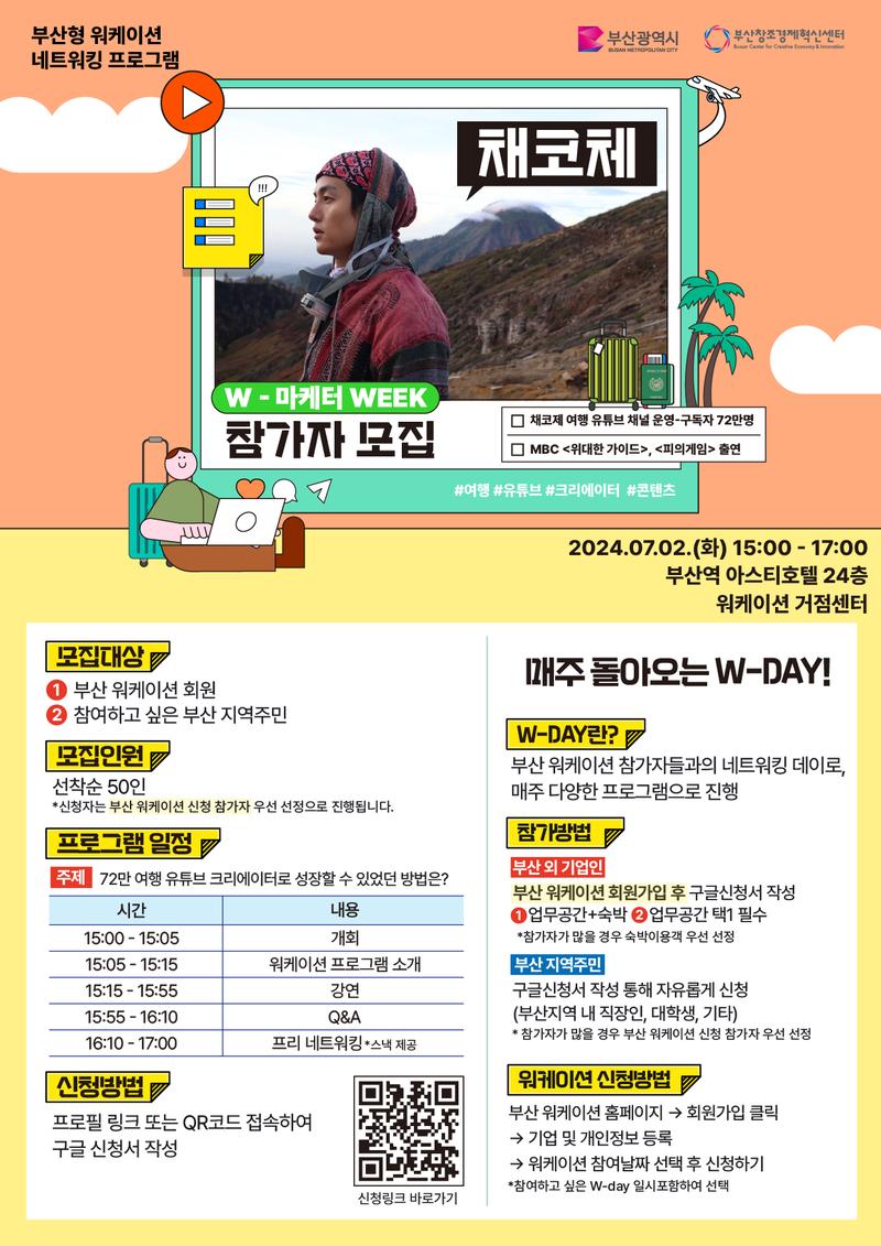 이번 W-WEEK는 여행 유튜브 크리에이터 '채코제'님을 모시고, '72만 여행 유튜브 크리에이터로 성장할 수 있었던 방법은?'이라는 주제로 진행할 예정입니다!