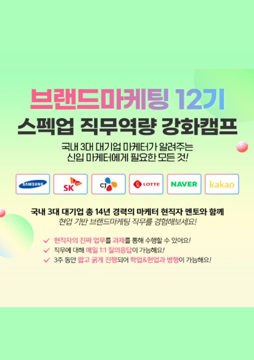 국내 3대 대기업 총 14년 경력의 현직자와 함께하는 진짜 실무 <브랜드마케팅 12기 직무역량 강화캠프>