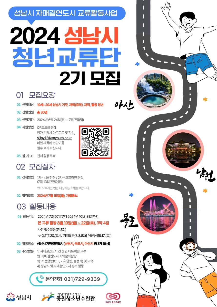 - 중원청소년수련관 활동사업팀 자매결연도시 교류활동사업 담당 매니저 031) 729-9339 / sijiny12@snyouth.or.kr