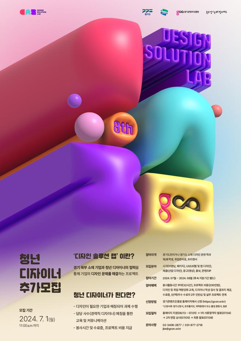 디자인 솔루션 랩 운영사무국(접수 문의 등) 02-3406-2877 / jke@gcon.or.kr