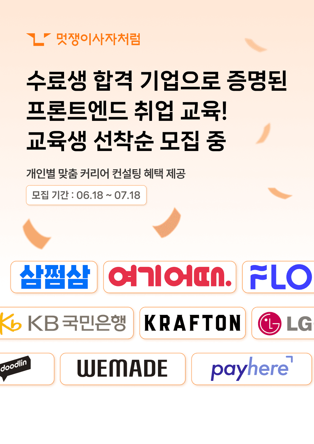 지원 완료자에 한하여 HTML/CSS, JavaScript 기초 VOD 강의를 무료로 드리고 있어요!