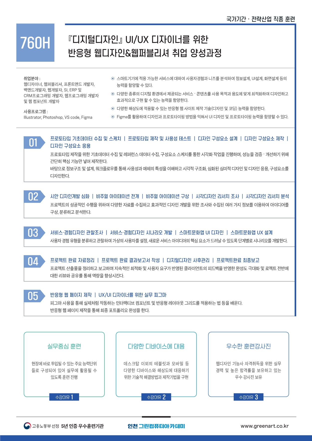 훈련시간 [월-금] 09:00 - 14:00 / 09:30 - 18:20 (총760시간)