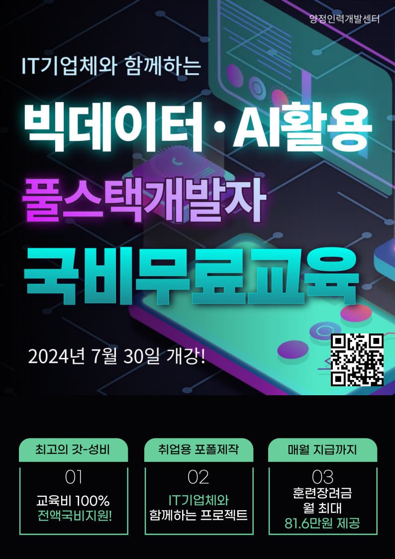 [전액무료] IT기업체와 함께하는 실무 프로젝트 교육! 빅데이터,AI를 활용한 풀스택 개발자 양성교육