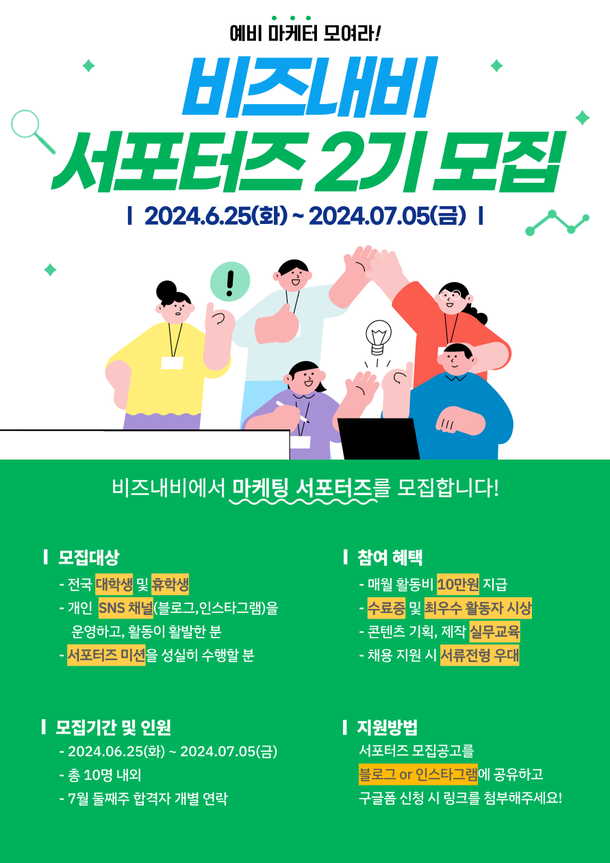 2024년 여름을 함께 할 비즈내비 서포터즈 2기를 모집합니다.