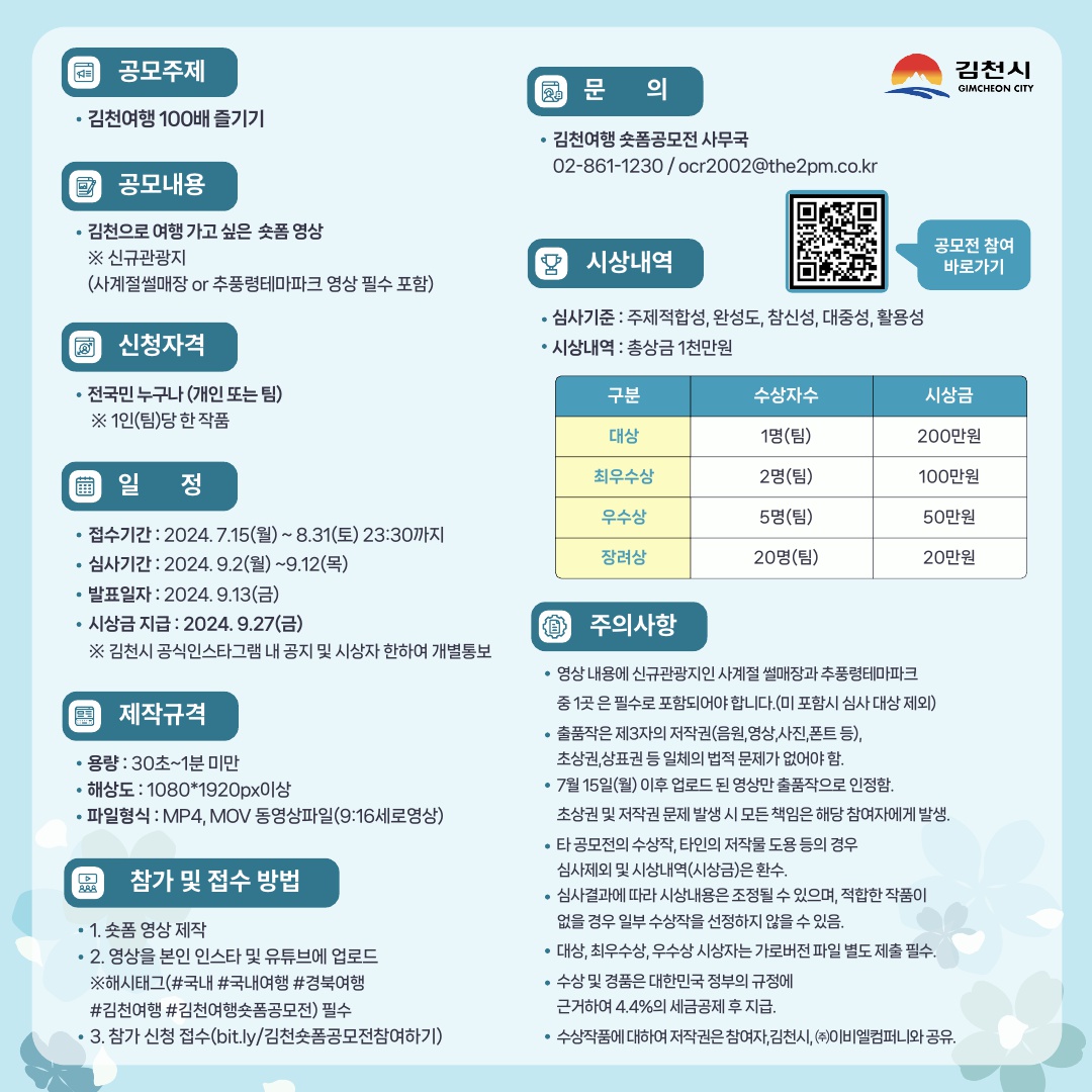 3. 참가 신청 접수(bit.ly/김천숏폼공모전참여하기)