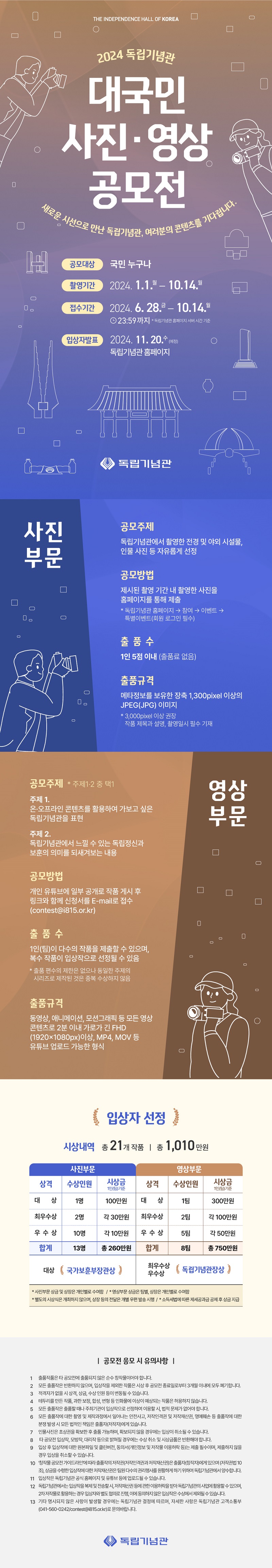 - 입상발표 : 2024. 11. 20.(수) (예정), 독립기념관 홈페이지