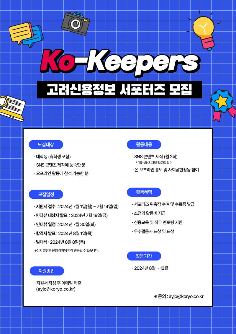 고려신용정보 대학생 서포터즈 Ko-Keepers를 모집합니다.