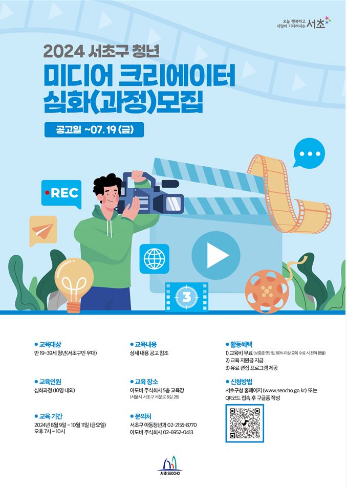 📌 모집 대상 : 영상 콘텐츠 제작에 관심있는 청년 (서초구민 우대)