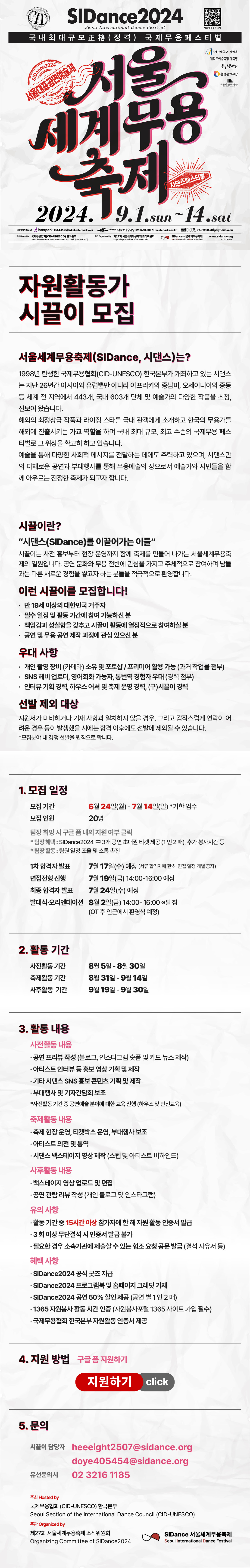 🍀SIDance2024 자원활동가 시끌이를 모집합니다!🍀