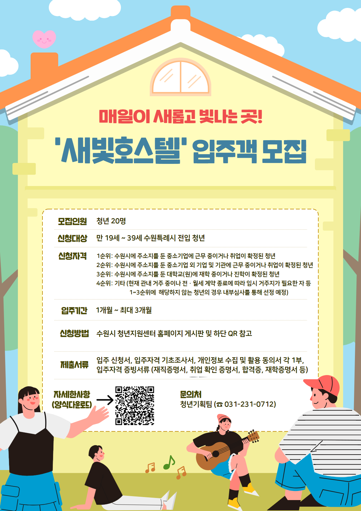 ○ 신청방법: 수원시 청년바람지대 홈페이지 게시판 및 포스터 QR 참고