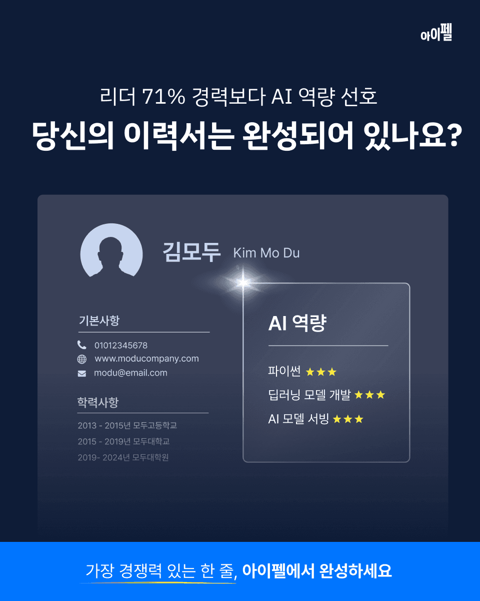 👉 지금 바로 아이펠에서 AI 역량 점프를 시작하세요! https://me2.kr/Y1ce6
