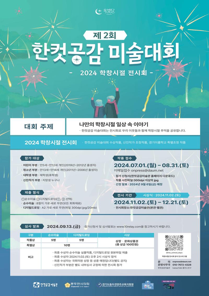 - 제2회 한컷공감 미술대회 공모전 수장작은 2024 학창시절 전시회로 전시됩니다.