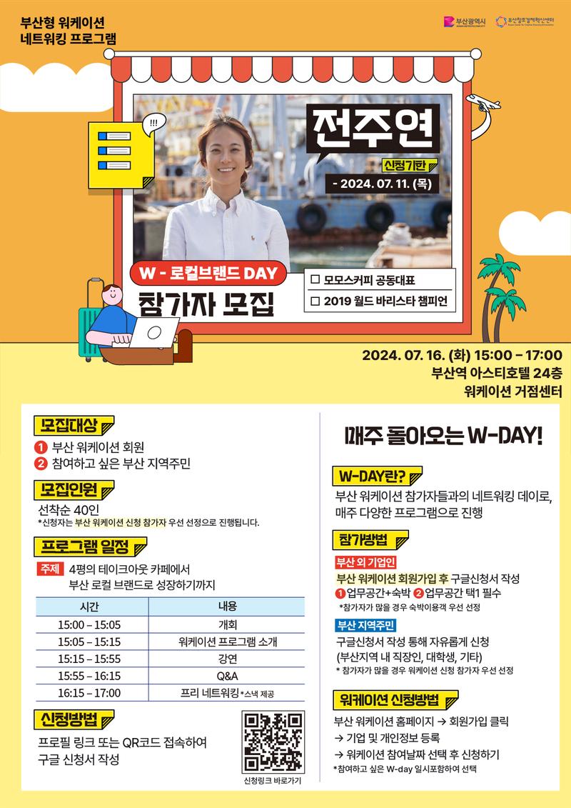 부산형 워케이션 참가자뿐만 아니라 부산내에 계시는 분들도 함께 교류하고자 하니 많은 참여 부탁드립니다 :)