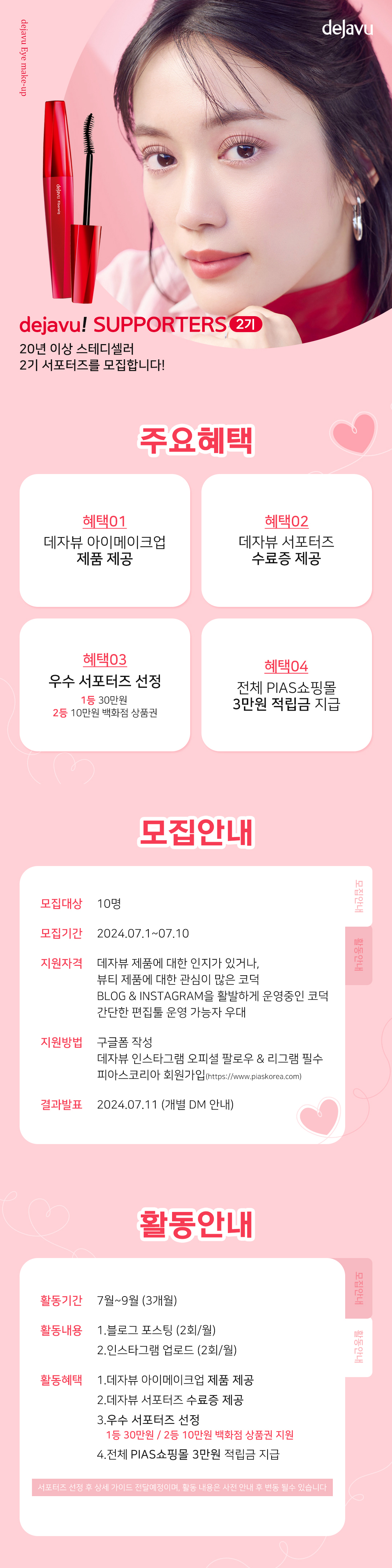 - 1등 30만원 / 2등 10만원 / 서포터즈 전체 공식몰 3만원 적립금 지급