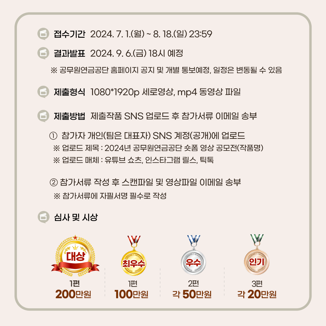 ※ 파일명·이메일 제목 : 2024년 공무원연금공단 숏폼 영상 공모전(작품명)