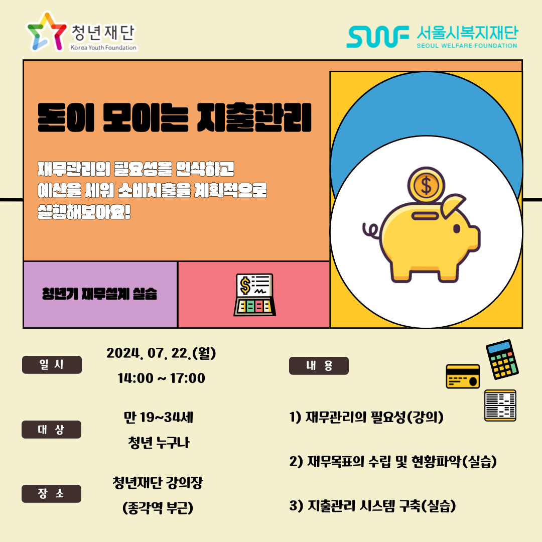 청년기 재무관리 필요성을 인식하고, 목표 설정과 지출 관리하는 교육을 진행합니다:)