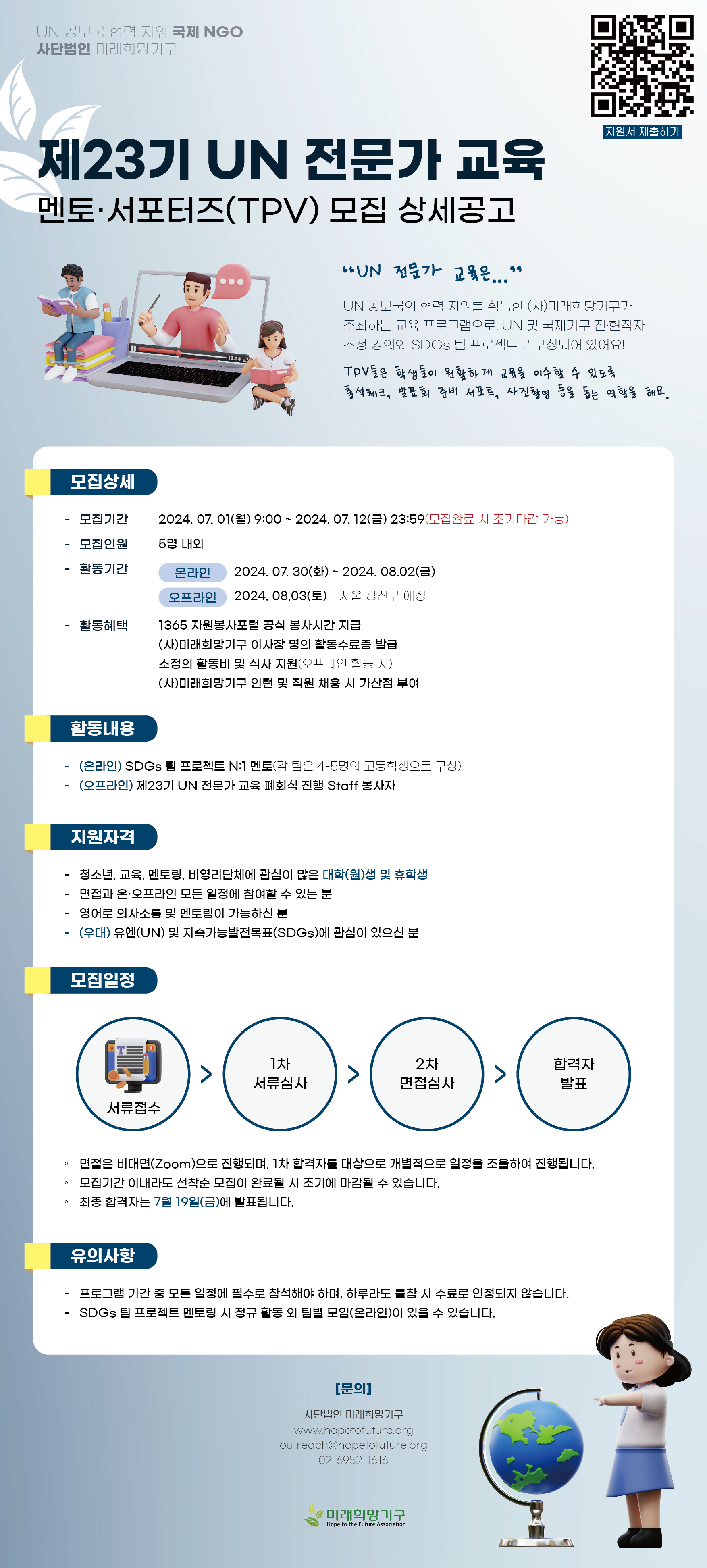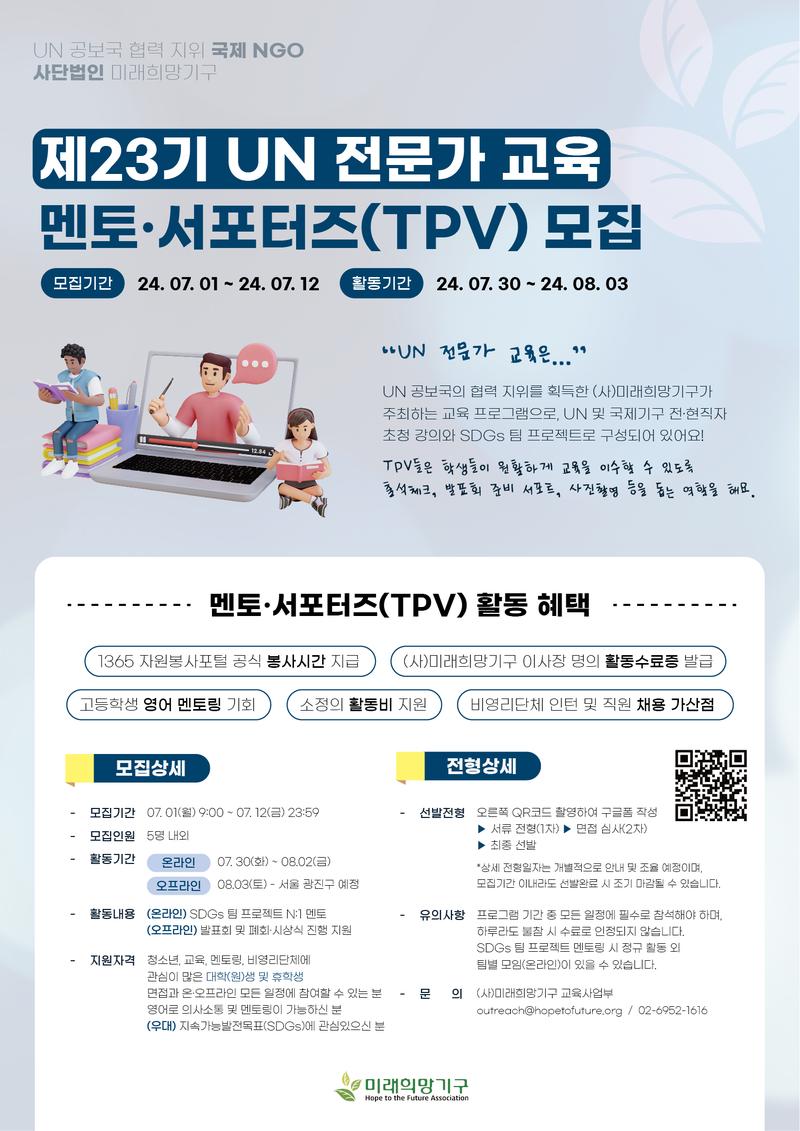 상세 내용은 (사)미래희망기구 홈페이지를 통해 확인 후 지원해주시기 바랍니다. (https://bit.ly/23rd_tpv)
