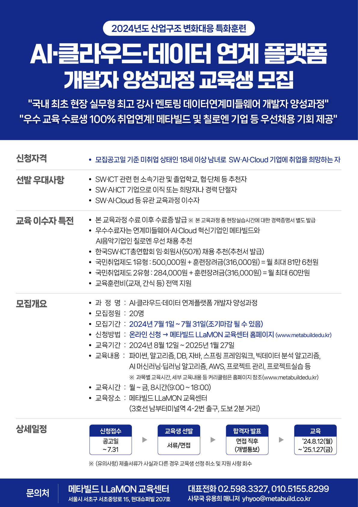 * 문의처 : 유용희 매니저(010-5155-8299, yhyoo@metabuild.co.kr)