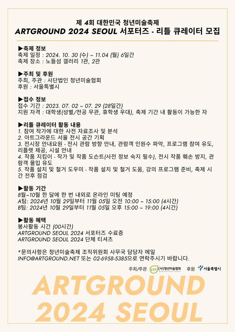 - ARTGROUND SEOUL 2024 공식 리틀 큐레이터 지원서 작성