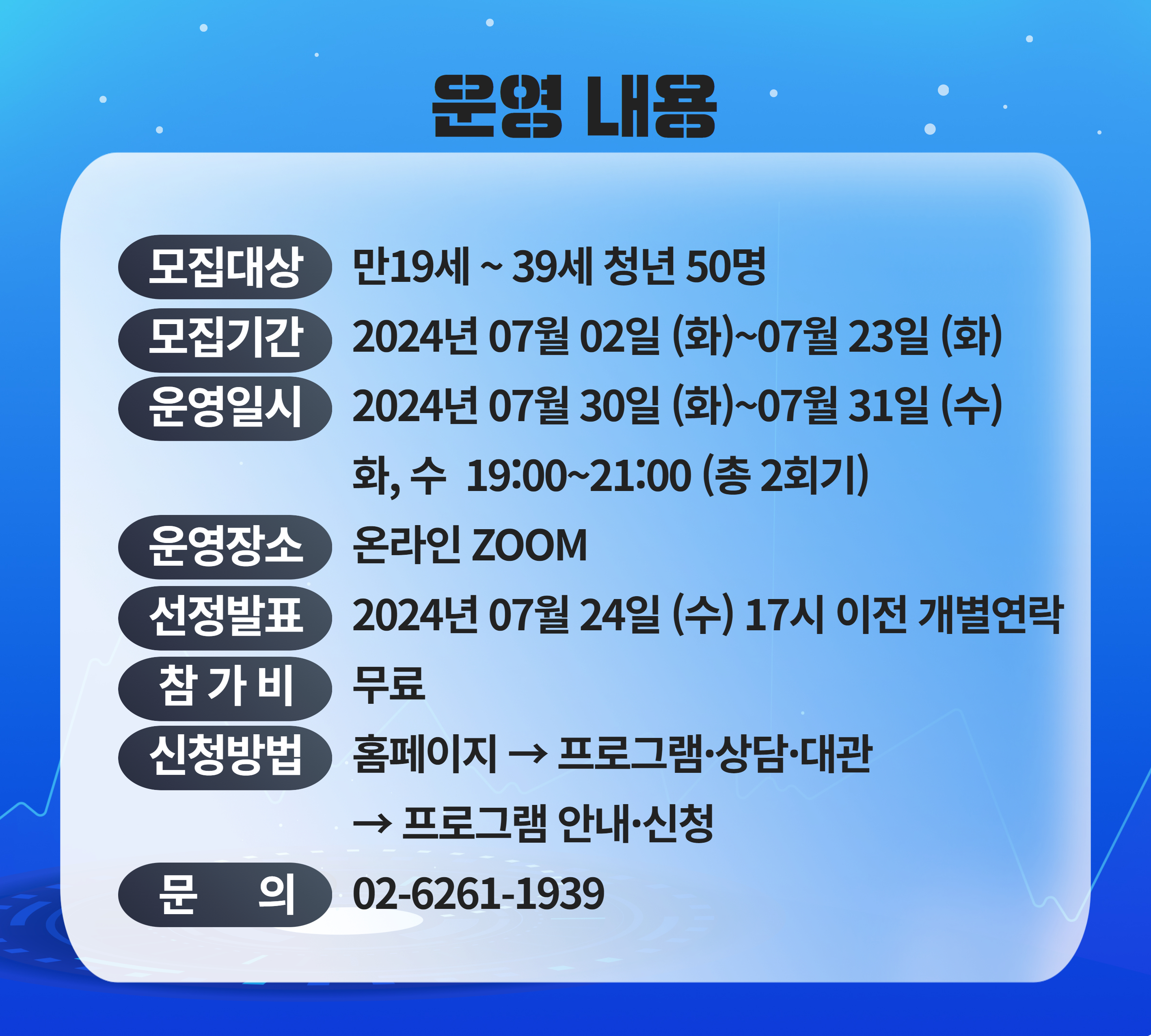 *단순 변심으로 프로그램 선정 후 포기 시 노쇼로 간주되어, 추후 프로그램 참여에 제한이 있을 수 있으니 꼭 신중하게 신청바랍니다.