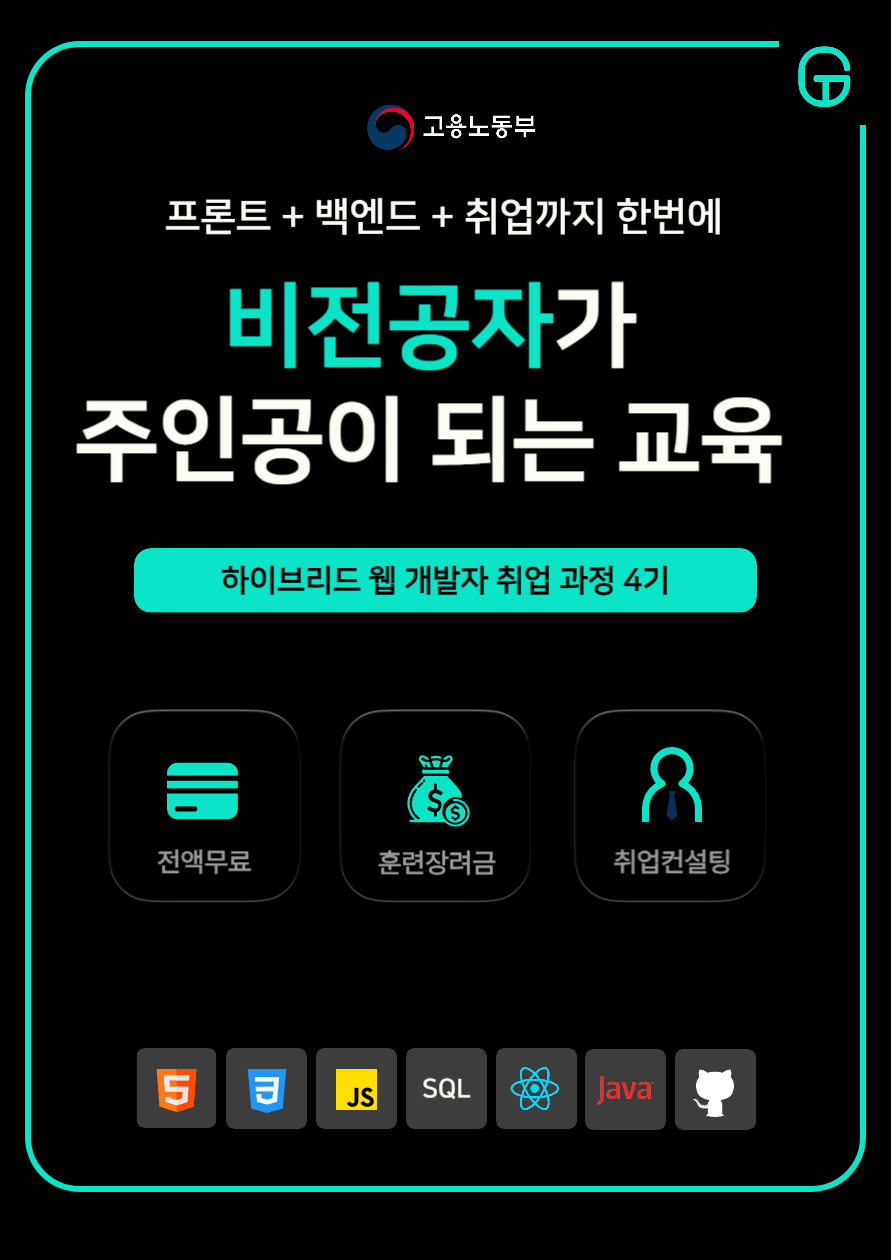 🏆 고용노동부 5년 인증 우수훈련기관 구트아카데미 KDT