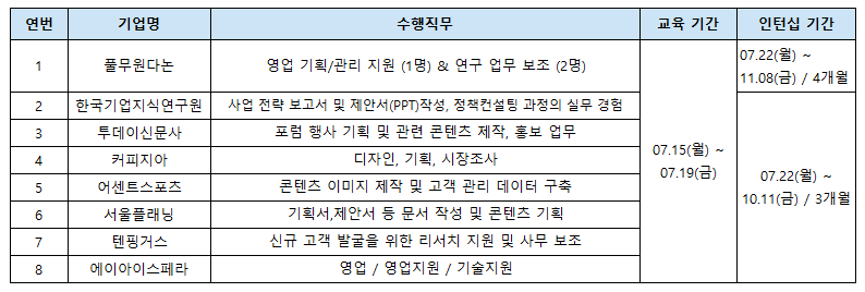 - 사전직무교육 기간 : 2024.07.15 (월) ~ 07.19 (금), 1주일 간, 총 40시간 진행