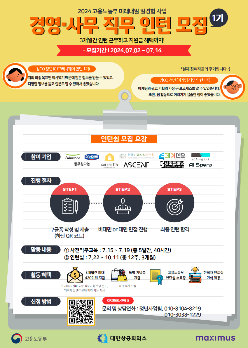 ⭐ 2024 미래내일 일경험 경영/사무 직무 1기 인턴십 참여자 모집 ⭐
