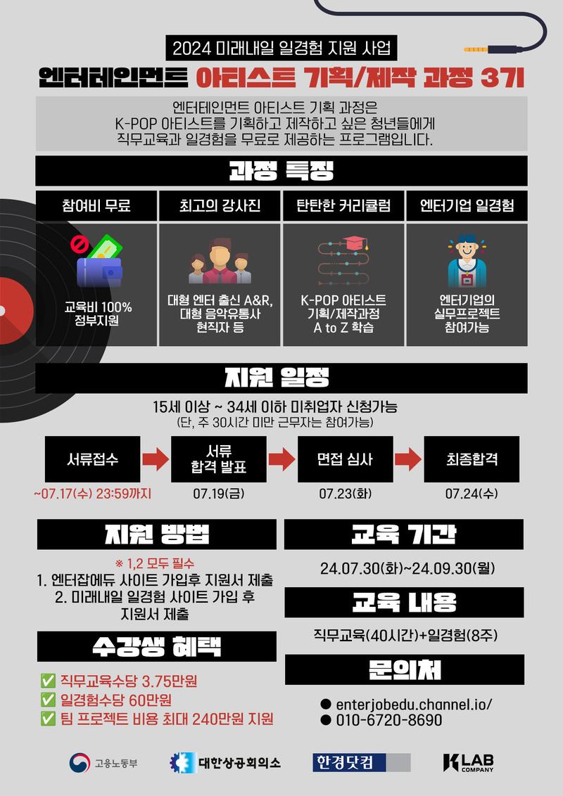2024 미래내일 일경험 지원사업 엔터테인먼트 아티스트 기획 3기