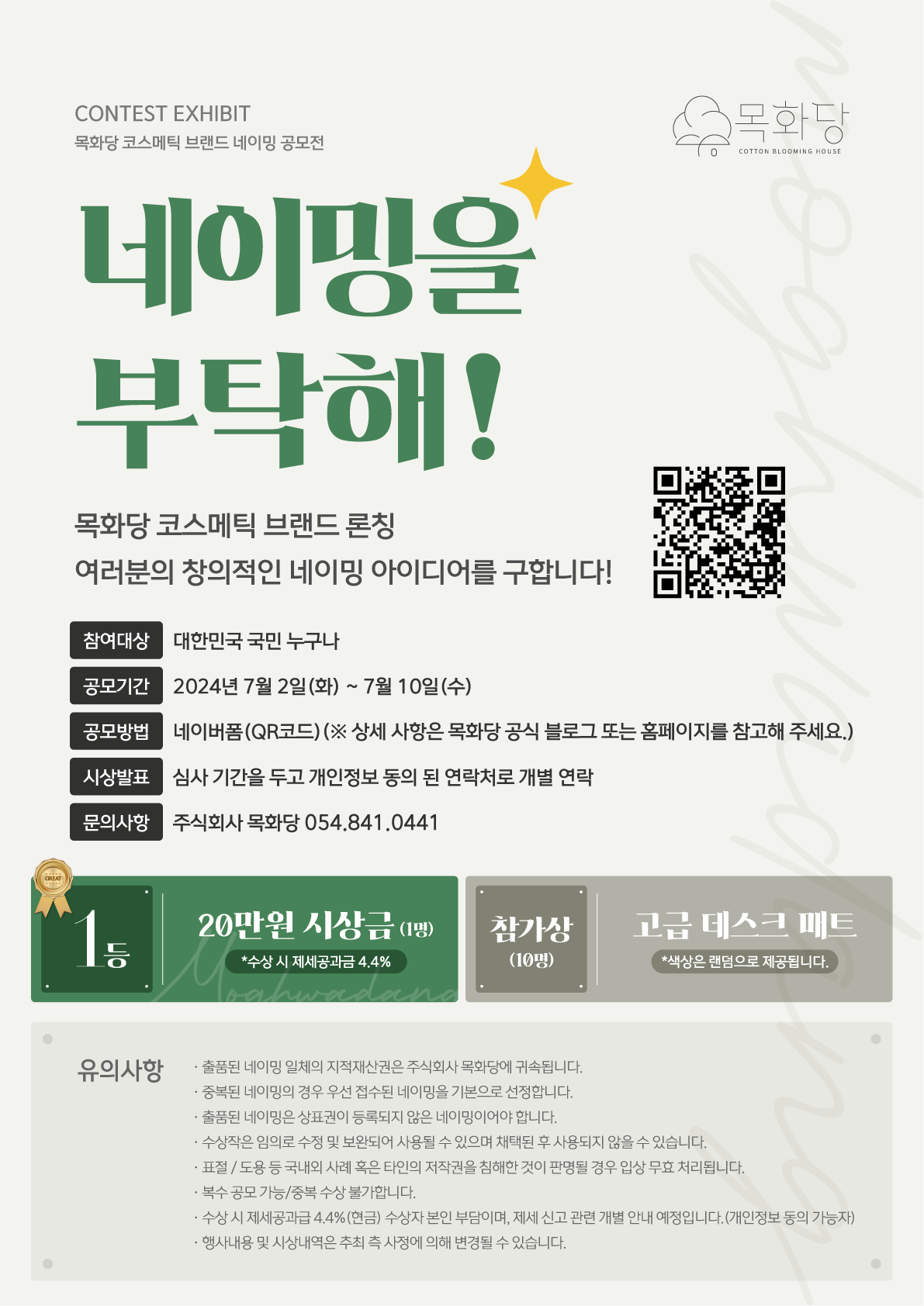 목화당 코스메틱 브랜드 론칭, 여러분의 창의적인 네이밍 아이디어를 구합니다.