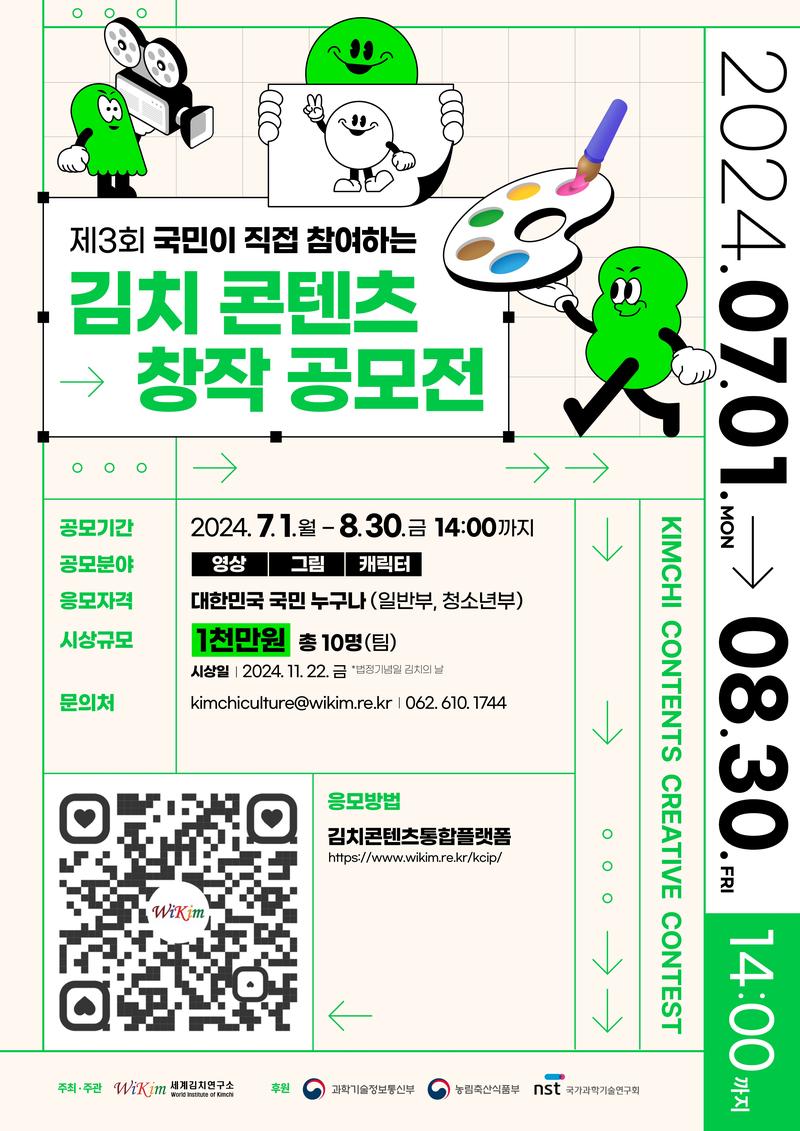 ■ 지원 방법 : 김치콘텐츠통합플랫폼(KCIP)* ‘공모전’ 메뉴 설명문 참고
