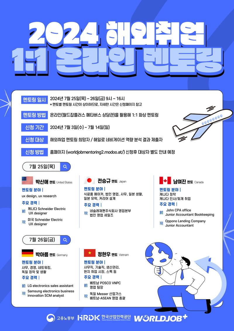 - 온라인(월드잡플러스 메타버스 상담관)을 활용해 1:1 화상 멘토링, 접수 마감 후 신청자 별도 안내 예정