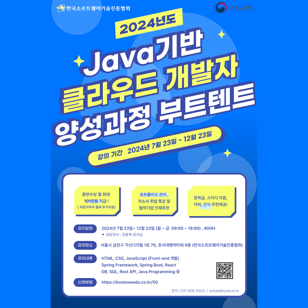 - 교육비, 교재비, 교육장비 모두 지원(KOSTA 부담)