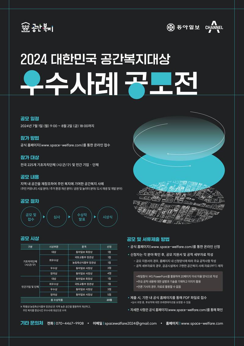 안녕하세요, 2024 대한민국 공간복지대상 우수사례 공모전 운영사무국입니다.