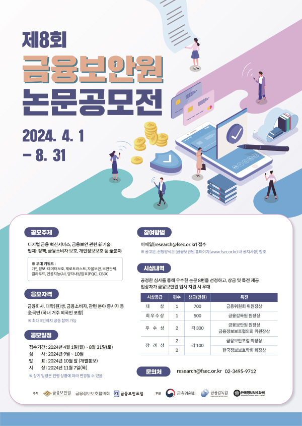 전 국민의 관심을 고취하고자 아래와 같이 「제8회 금융보안원 논문 공모전」을 개최합니다.
