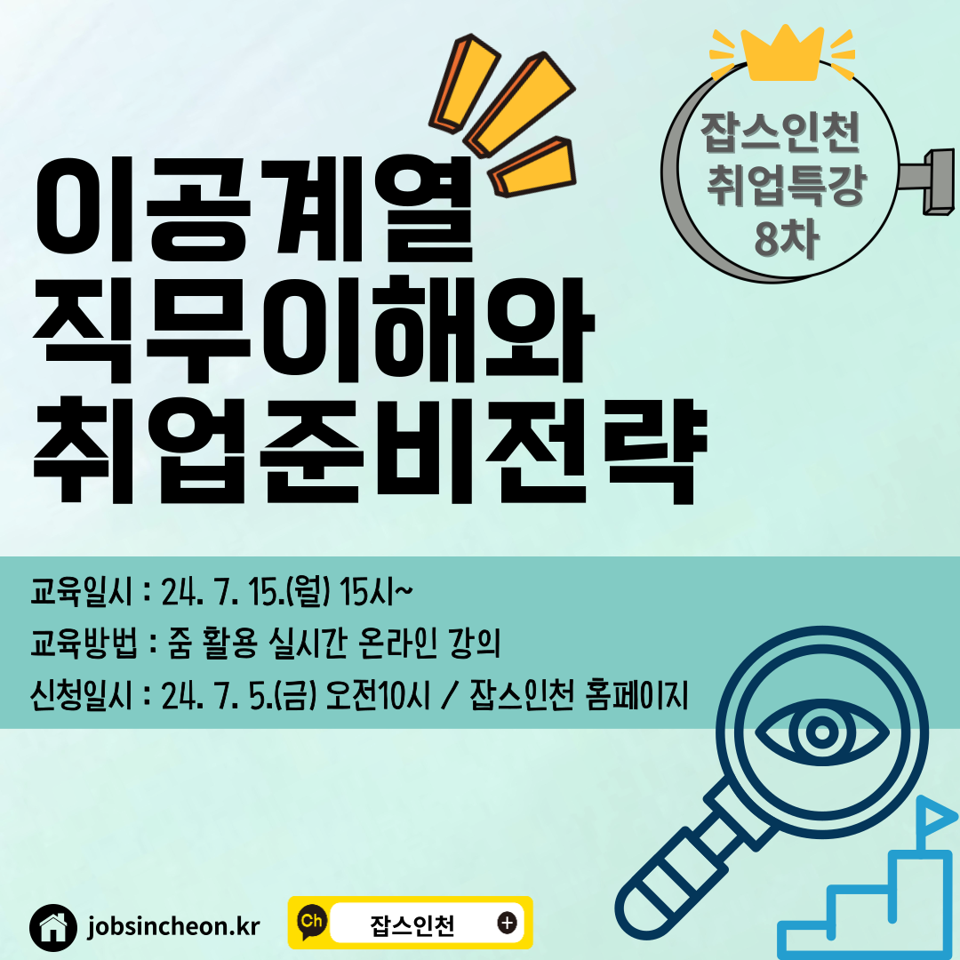 [job's인천]참여자모집_이공계열 직무이해와 취업준비전략 특강(7/15)