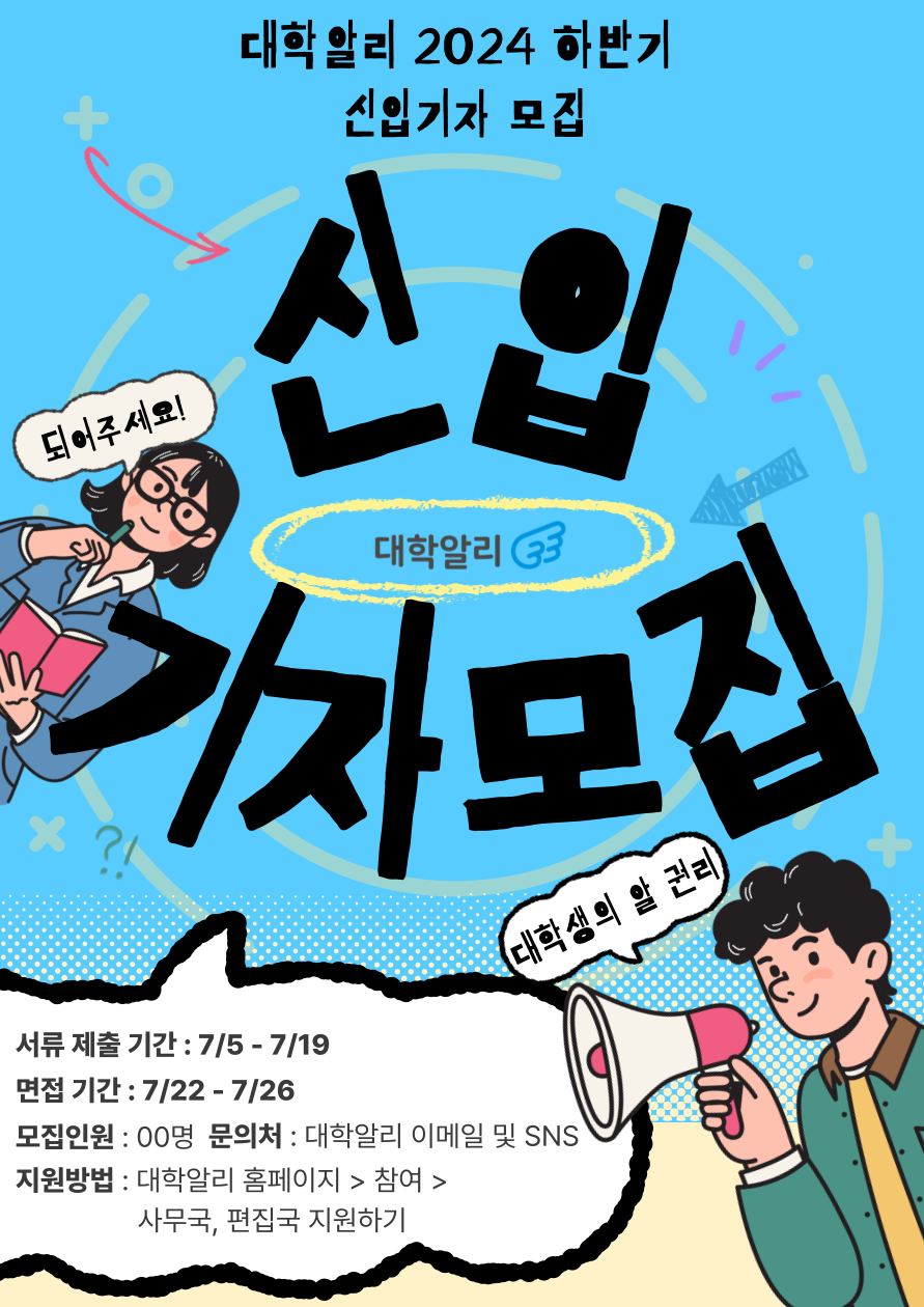 - 마케터 : 대학알리의 콘텐츠를 널리 알려주실 분을 구합니다. 대학알리의 소셜미디어 관리 등 홍보 전반을 책임지게 됩니다.