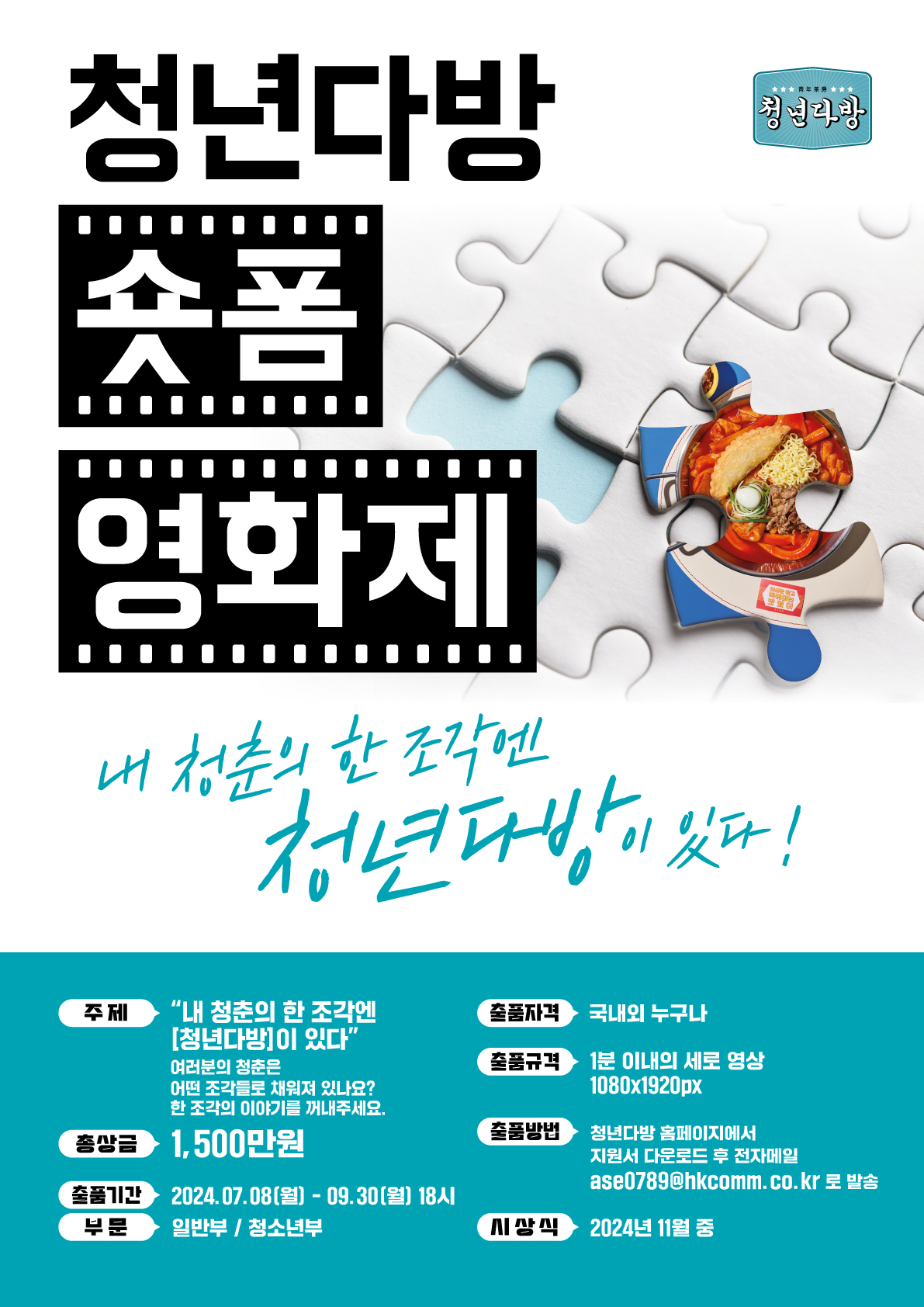 총 1,500 만 원의 상금이 달린 <2024 청년다방 숏폼 영화제>
