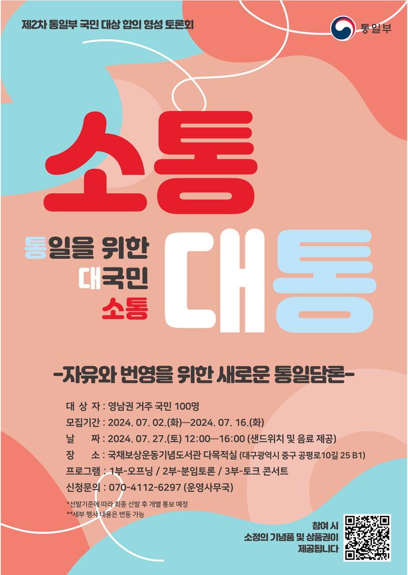 통일부 2024년 제2차 통일부 국민 대상 합의 형성 토론 소통대통 토론단 모집