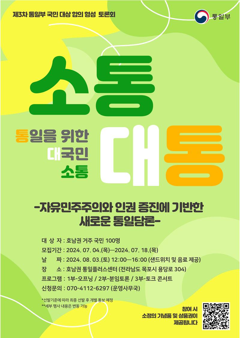 - 2024. 8. 3.(토) 12:00 ~ 16:00, 호남권 통일플러스센터(전라남도 목포시 용당로 304)