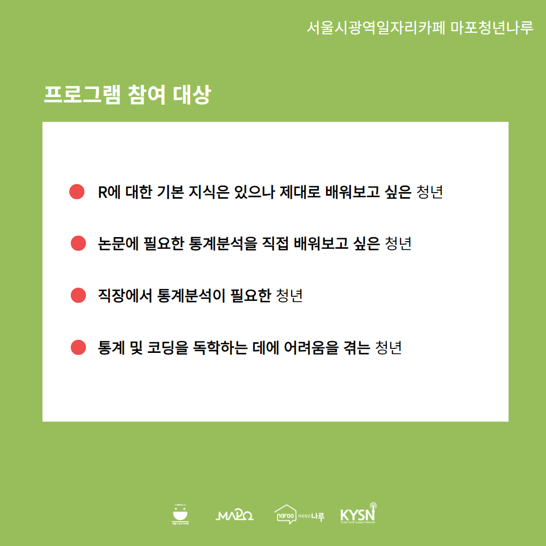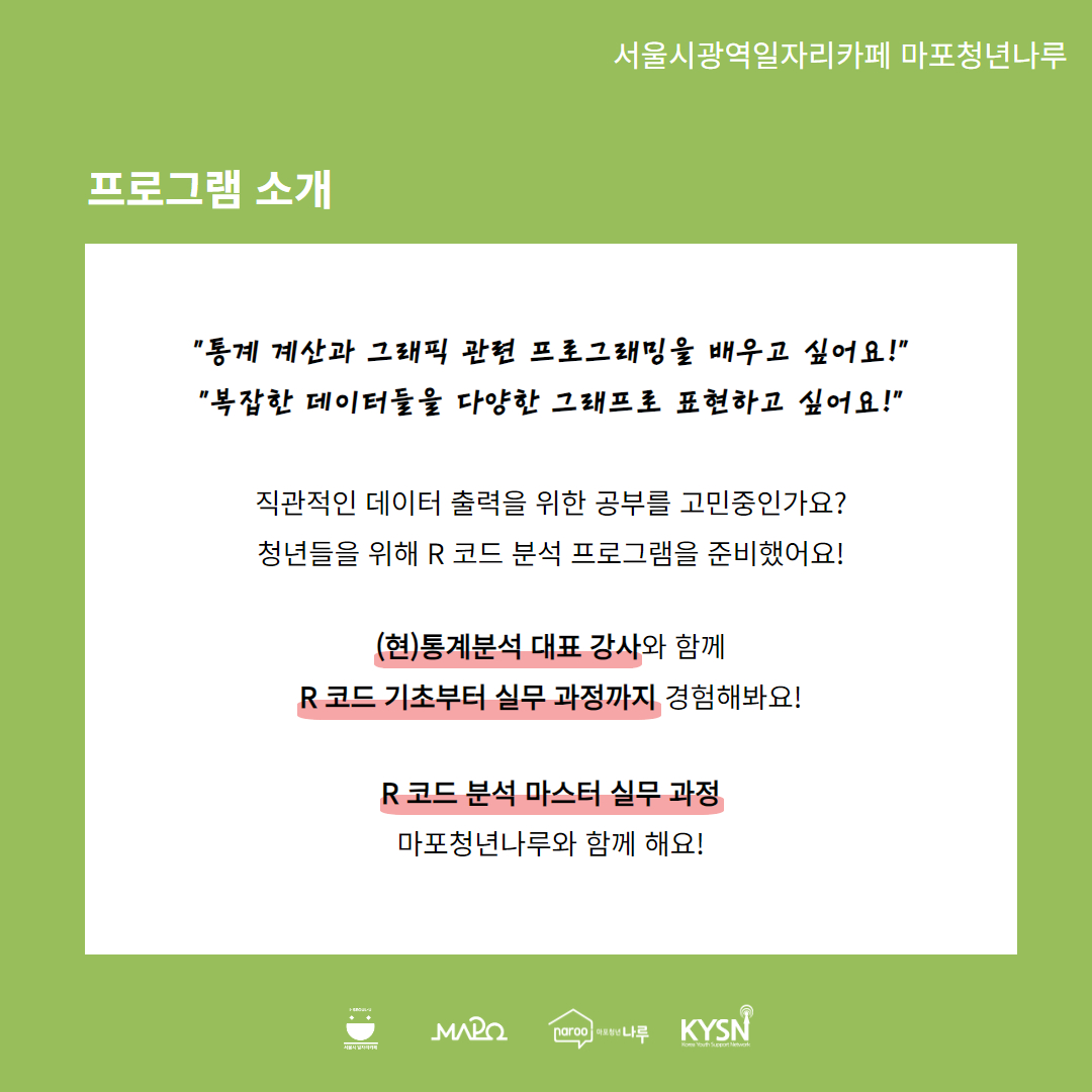 통계 분석 역량 강화를 희망하는 청년들을 위해 나루에서 준비했어요 :)