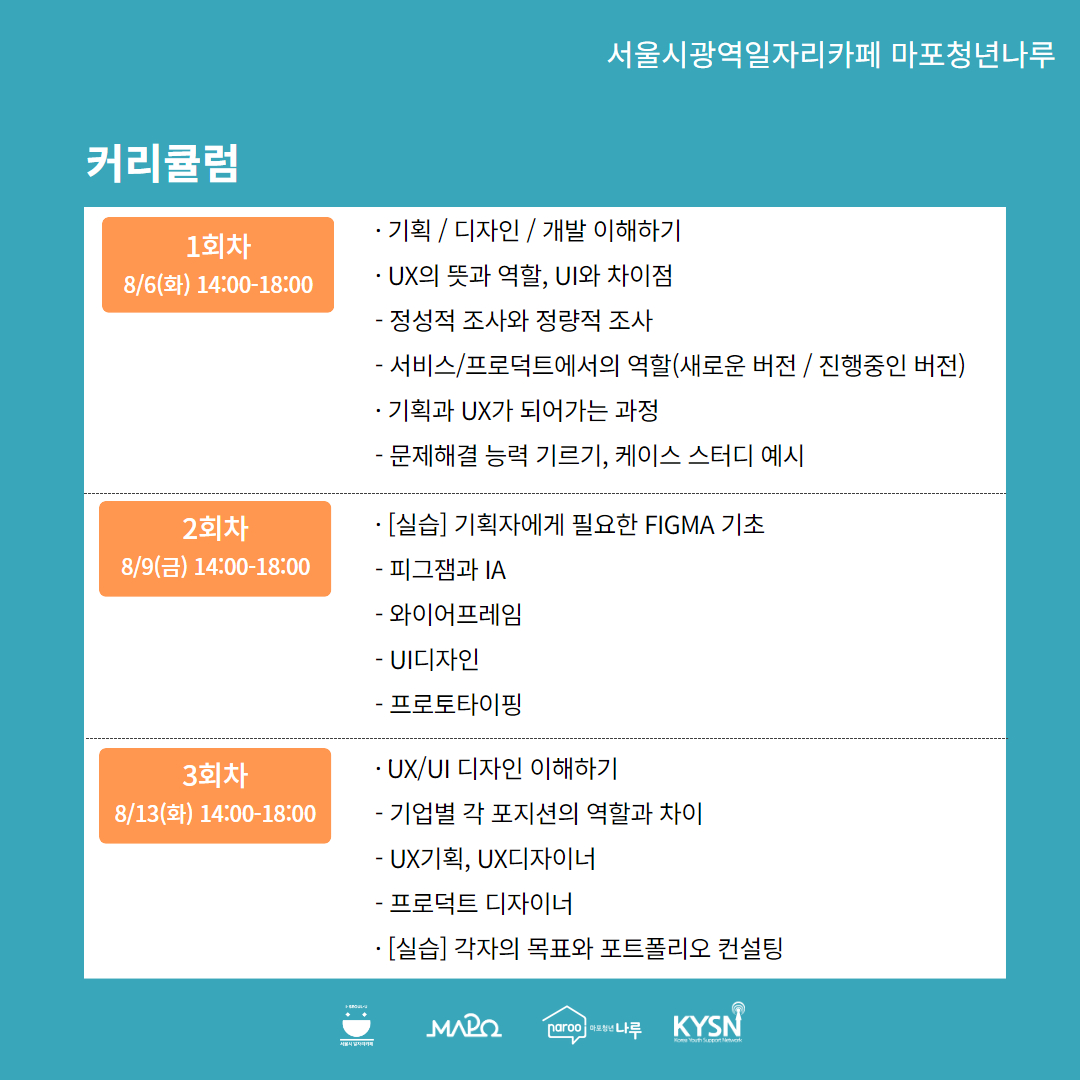 ✰ 일시: 8/6(화), 8/9(금), 8/13(화) 14:00-18:00, 8/16(금), 8/20(화), 8/23(금) 14:00-17:00 / 총 6회