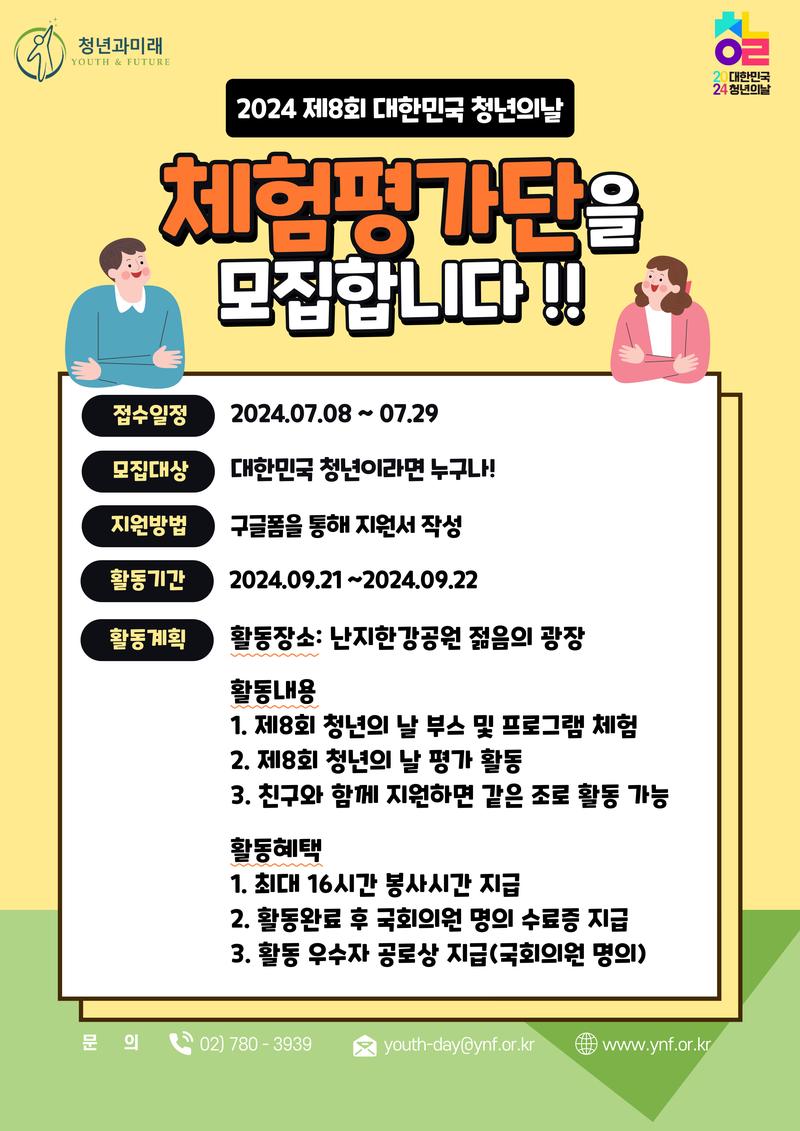 ‼️<2024 제8회 대한민국 청년의 날> 체험평가단을 모집합니다‼️
