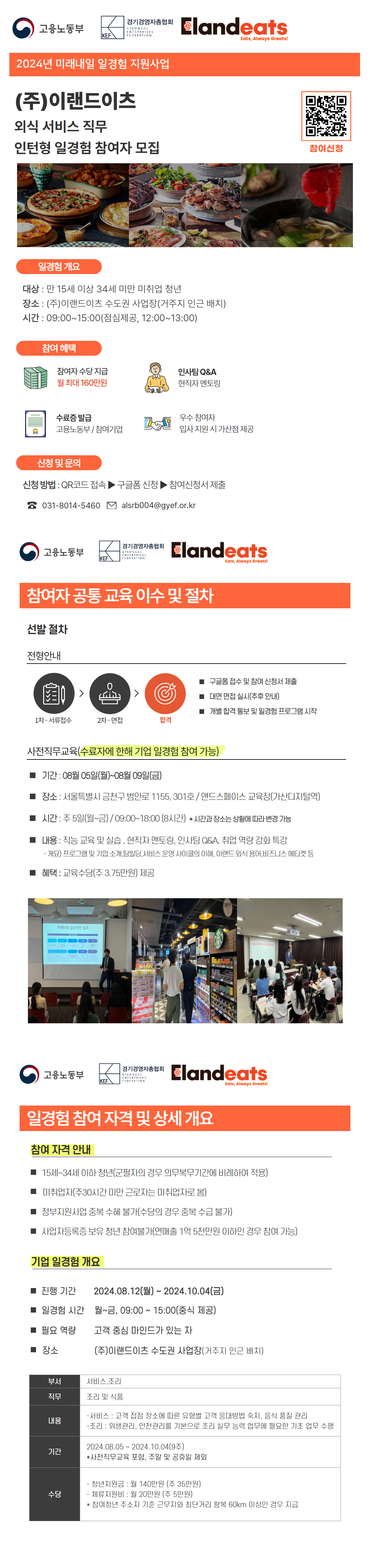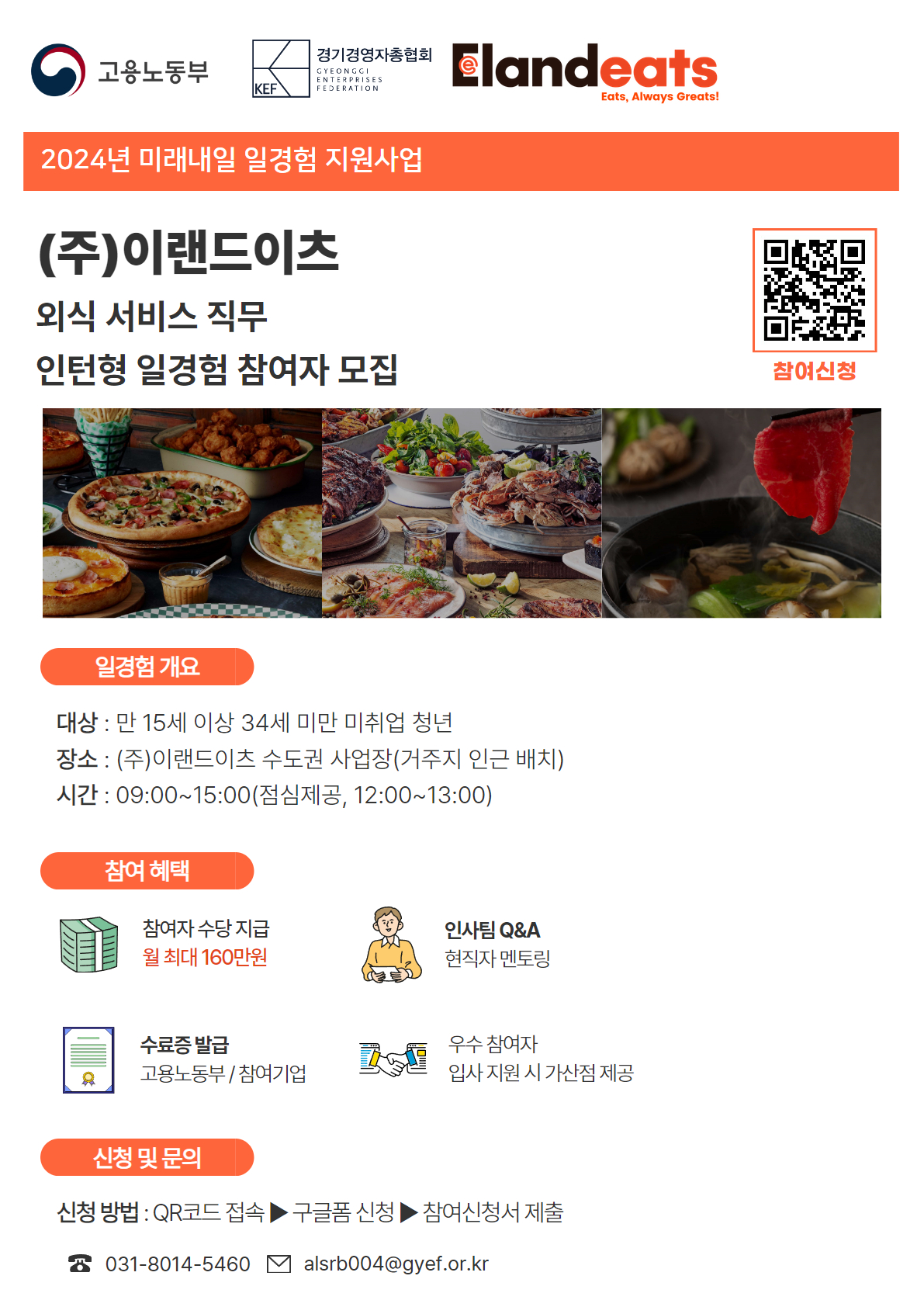 [(주)이랜드이츠 1기] 외식 서비스 인턴형 일경험 프로그램