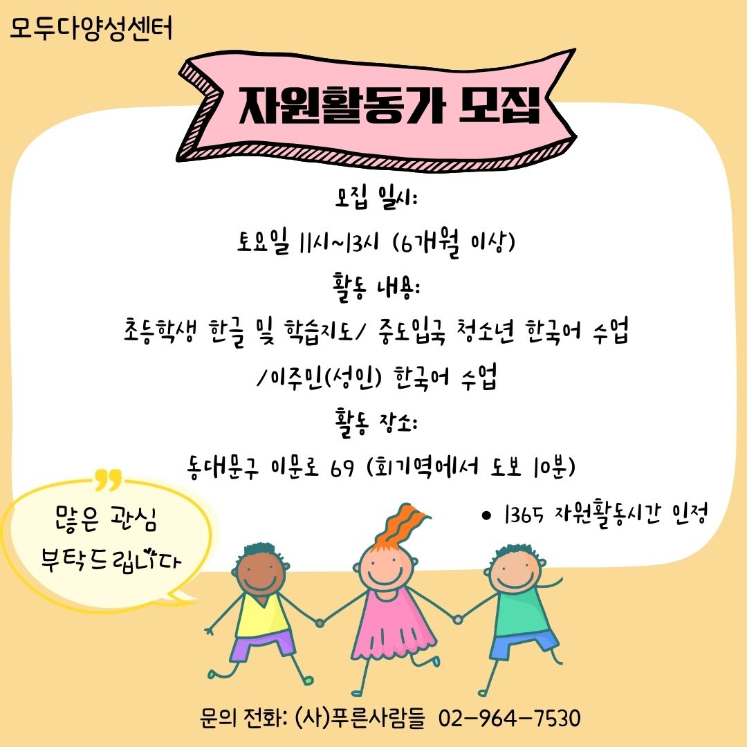 ✨모두다양성센터 자원활동 교사 모집✨