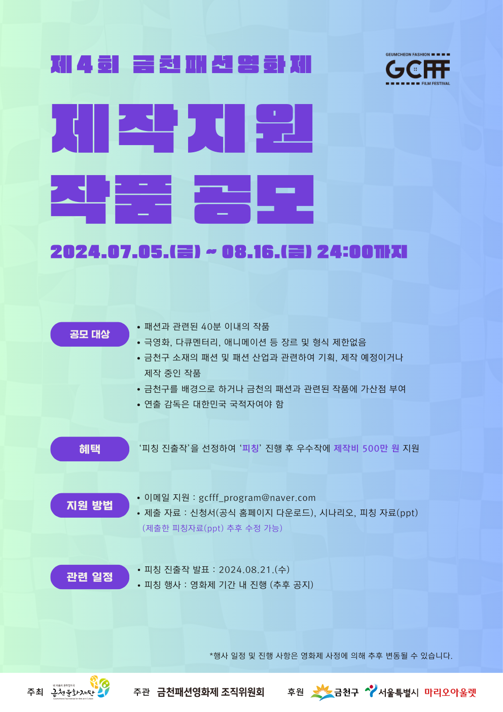 ○ 주최: (재)금천문화재단 ○ 주관: 금천패션영화제 조직위원회