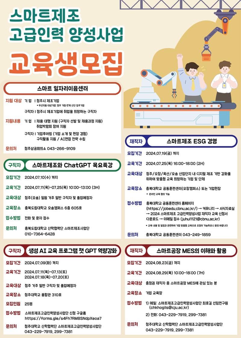 청주대학교 산학협력단 스마트제조고급인력양성사업단 / TEL : 043-229-7919, 299-7381