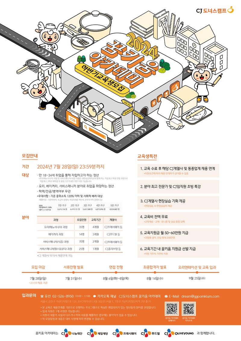 [CJ나눔재단,CJ취업연계] 2024 하반기 꿈키움 아카데미 교육생 모집(~7.28)