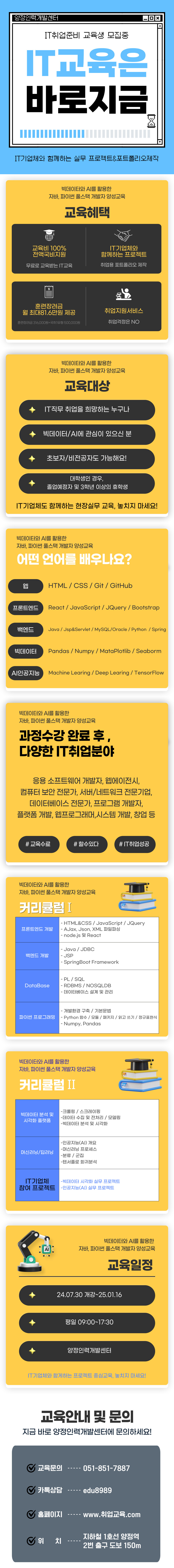 - 교육장소 : 고용노동부 지정 우수훈련기관 양정인력개발센터
